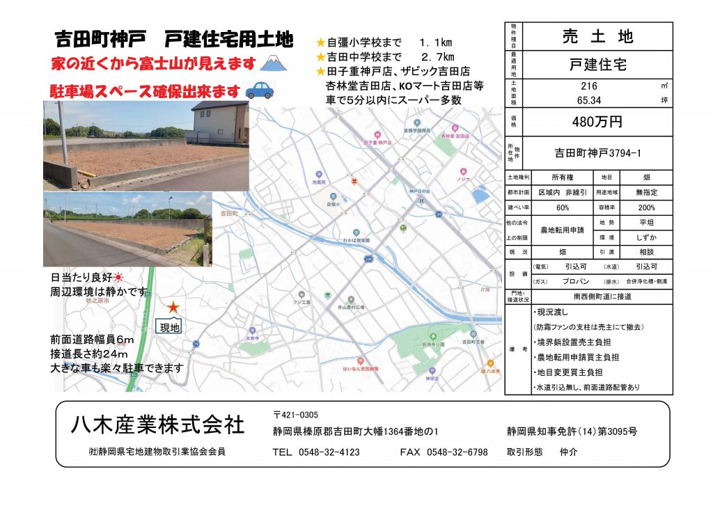 所在地 静岡県榛原郡吉田町神戸字中原3794番1